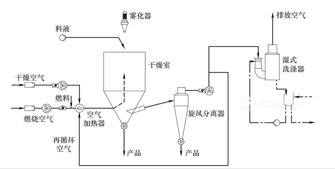 所謂噴霧干燥機開式循環流程,就是采用的干燥介質是空氣,干燥完成以后,廢氣排放到大氣中。
