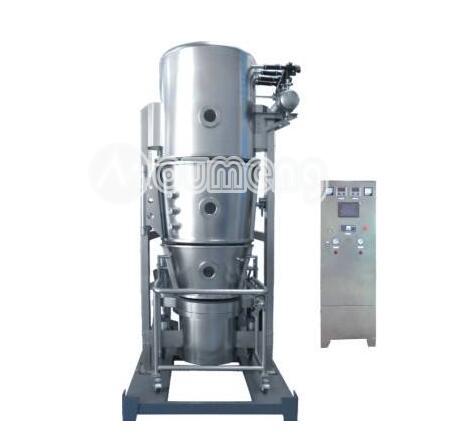 物料粉末粒子,在原料容器(流化床)中呈環形流化狀態,受到經過凈化后的加熱空氣預熱和混合,將粘合劑溶液霧化噴入,使若干粒子聚集成含有粘合劑的團粒,由于熱空氣對物料的不斷干燥,使團粒中水分蒸發,粘合劑凝固,此過程不斷重復進行,形成理想的、均勻的多微孔球狀顆粒。